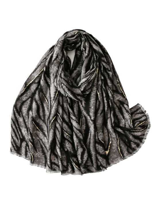 Scarvii - Zebra Print Scarf & Shawl with Gold Foil Fringe
