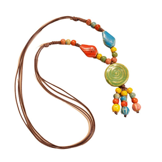 Bauai - Boho Ceramic Bead Fringe Long Necklace - Vintage & Unique