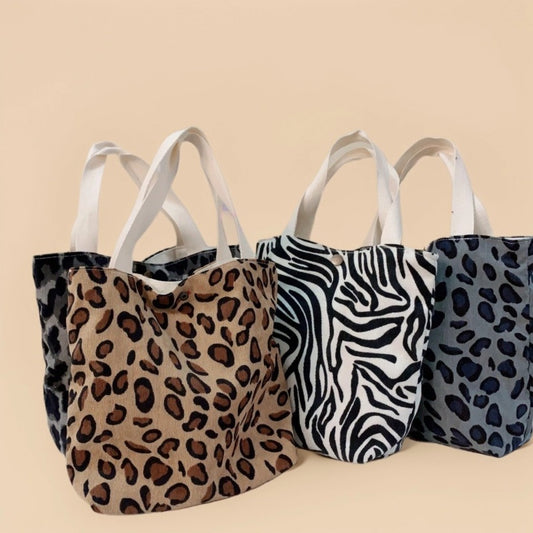 Small Corduroy Leopard Print Handbag