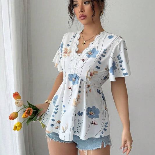 Troposa - Floral V-Neck Peplum Blouse - Summer Ready