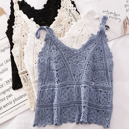 Solid Color Crochet Lace Hollow Camisole Top