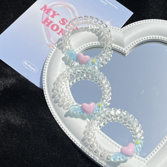 Telo - Blue Heart Wing Telephone Cord Hair Ties (Set of 3)