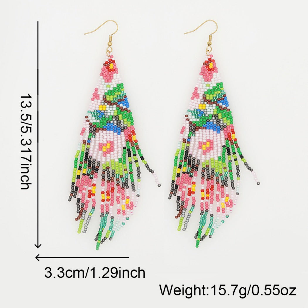 Earwish - Beaded Flag Tassel Earrings - Colorful & Boho