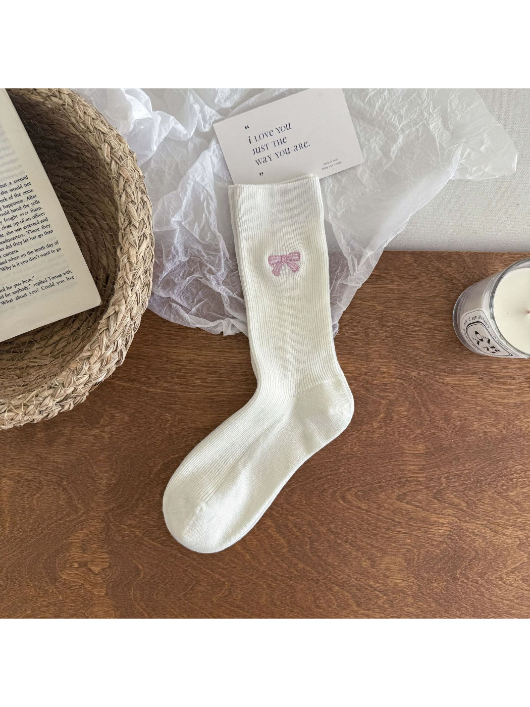 - Delicate bow socks with subtle embroidered detail for a feminine pop.