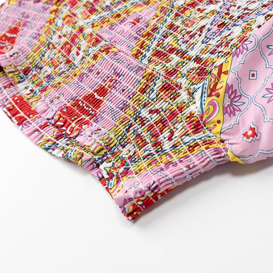 Troposa - Boho Print Top And Pants Set - Colorful & Chic
